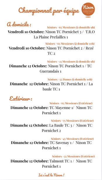 Vous pouvez retrouver les championnats par équipe du mois d'Octobre. Pour en savoir plus n'hésitez pas à aller voir sur Ten'up.