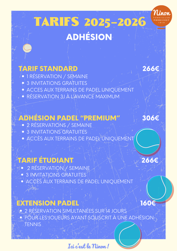 Voici les différentes formules qui vous permettent d'accéder aux 16 courts de tennis du Ninon toute l'année.